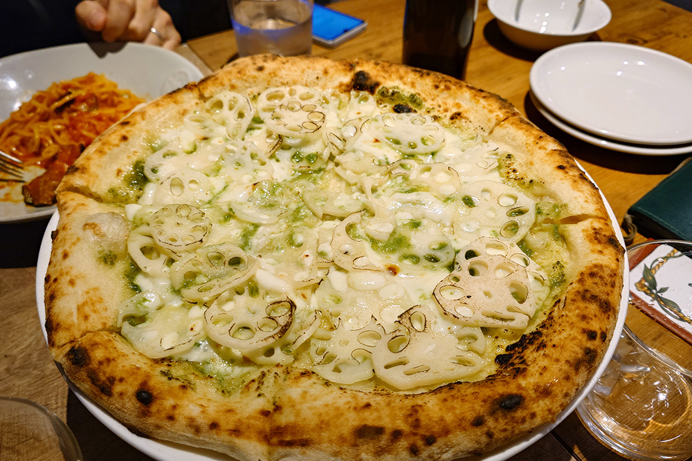 食感がシャクシャクとしてほんのり甘いレンコンに、ジェノベーゼがブルーチーズのような風味を生み出してて、面白かった。