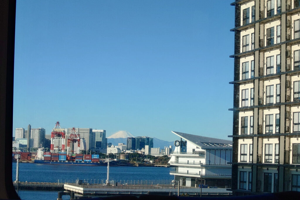 夜の雪の後、透き通った空が戻ってきました。ゆりかもめから遠くに白い富士山が見えました。