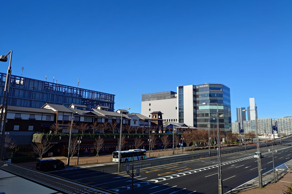 富士山が見えるかもと思って、食後に10階の展望足湯へ行きましたが、ビルの影に入って見えませんでした。防寒着が用意されていましたが、あまりの寒さに足湯には入らず、大浴場に戻りました。