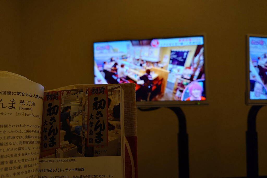 温泉からリラックスルームに戻ってみたら、鮨文のお姉さんがテレビに!