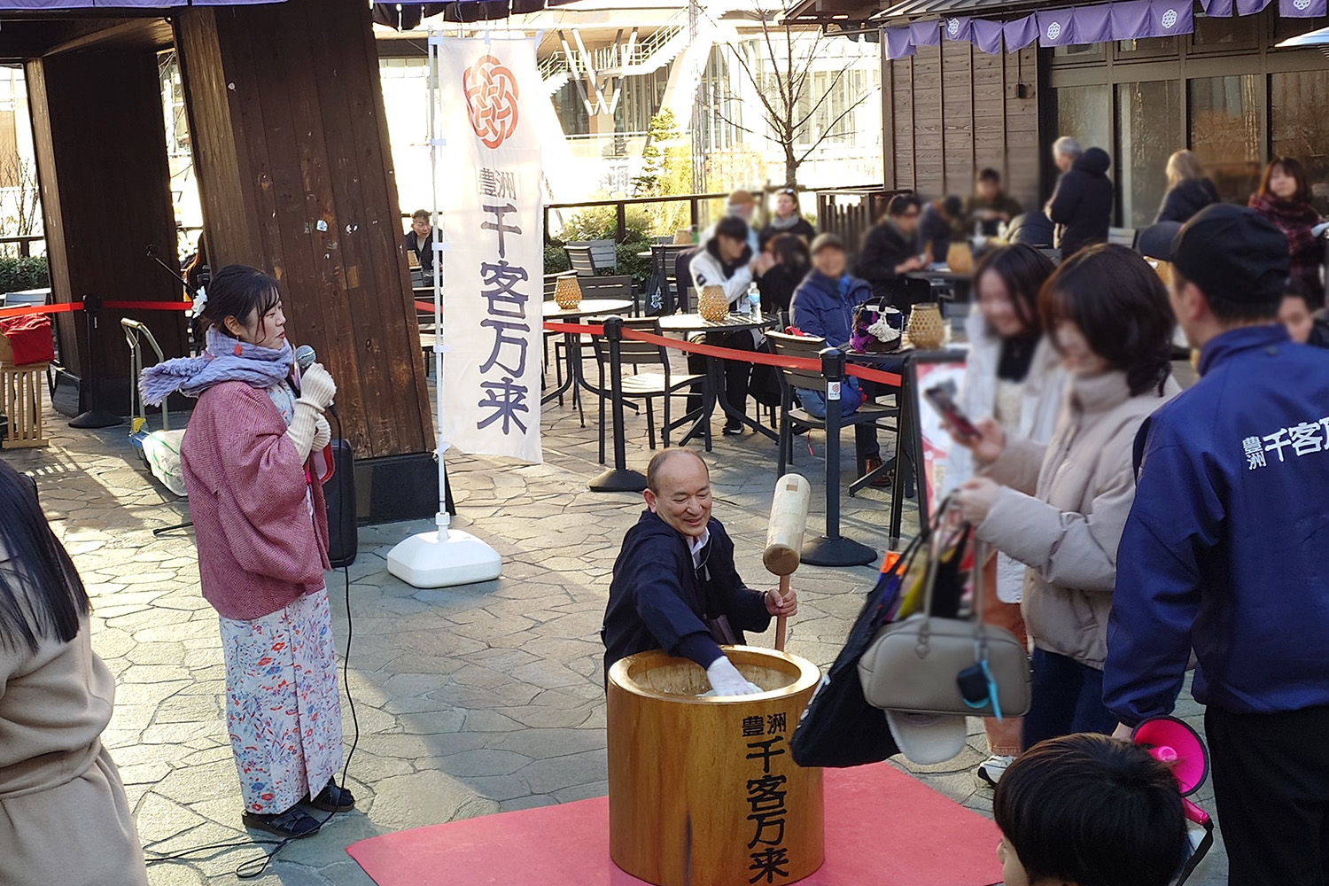 豊洲場外市場も大勢の人で賑わっていました。餅つきのイベントも大盛況です。