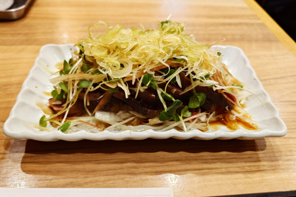 カツヲのサラダがど~んとやってきました。一口で収まらないサイズの分厚いタタキがたっぷりです。